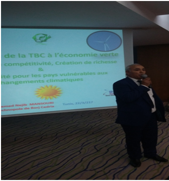 Monsieur Mohamed Nejib Mansouri, Président Directeur Général de la Société de Gestion de La Technopole de Borj Cedria, lors de sa présentation, a mis l’accent sur l’importance de l’économie verte à travers le monde et son impact sur l’économie tunisienne. Elle préserve l’écosystème, génère de l’emploi et maintien l’équilibre sociale.